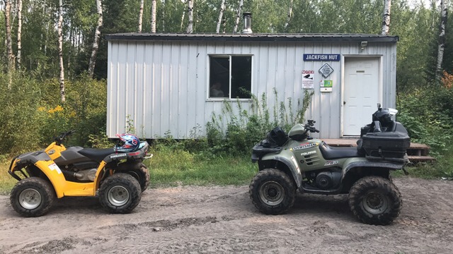 (Stock photos shown above, actual photo of our Can-Am and Polaris parked at Jackfish Hut shown below)